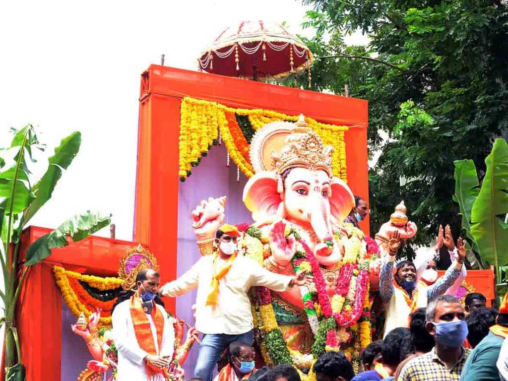 Hyderabad(Hyd): Braving the danger of mass COVID-19 infections, the annual Shobayatra (procession) of the Khairatabad Ganesh took-off today noon in around1:30 p.m. The timings were slightly sophisticated this yr. to also avoid traffic snarls, awhile the main idol itself is only nine-feet this yr., owing to the ongoing COVID-19 epidemic.