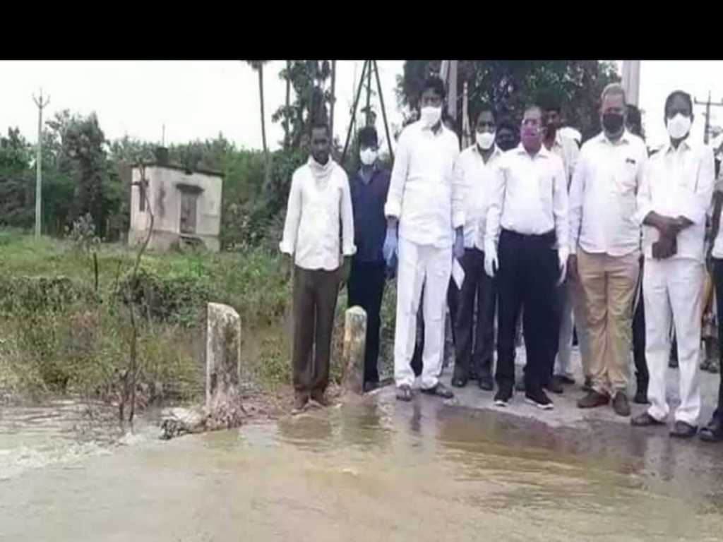 Krishna: Krishna Dist. Collector A. Md. Imtiaz & regional MLA Samineni Udaya Bhanu on Mon. inspected regions where floodwater of Munneru stream is overflowing near Lingala village in Vatsavai mandal of the dist..