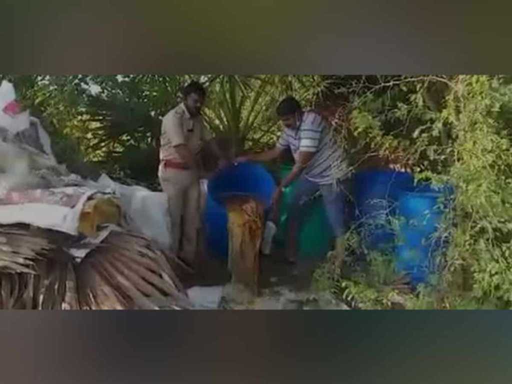 Similarly, the police destroyed 1,800 liters of jaggery wash in Deva Remuru village in Sydapuram Mandals.
