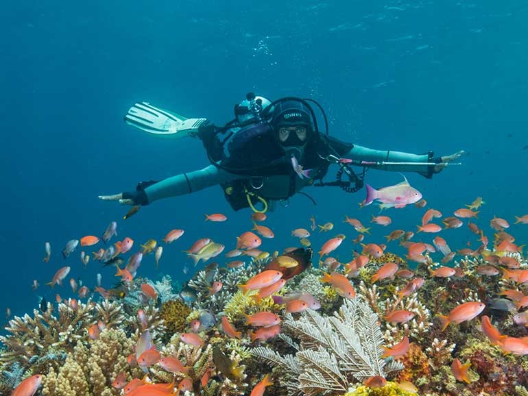 The landscapes resemble an African savanna dropped into an island chain, while underwater, you’ll find more than 260 species of coral and 1,000 species of fish.